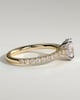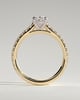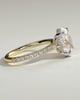Julia is a stunning 4-claw oval solitaire featuring a sparkling hidden halo, sweeping cathedral arches and a 2/3 pavé band.